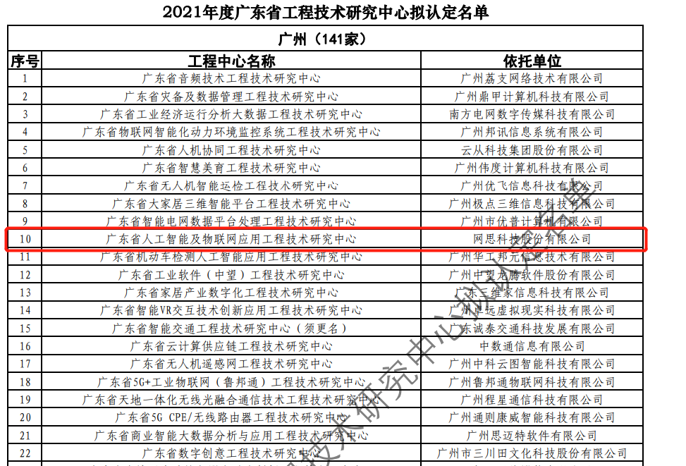 日前,广东省科技厅发布2021年度广东省工程技术研究中心名单。经过层层筛选、专家评审,依托KY SPORT 开云体育-KAIYUN SPORTS 建设的“广东省人工智能及物联网应用工程技术研究中心”榜上有名。广东省工程技术研究中心主要依托省内行业、领域具有科技实力的、拥有一定规模以上创新型企业建设,部分依托高校和科研院所组建。工程中心旨在